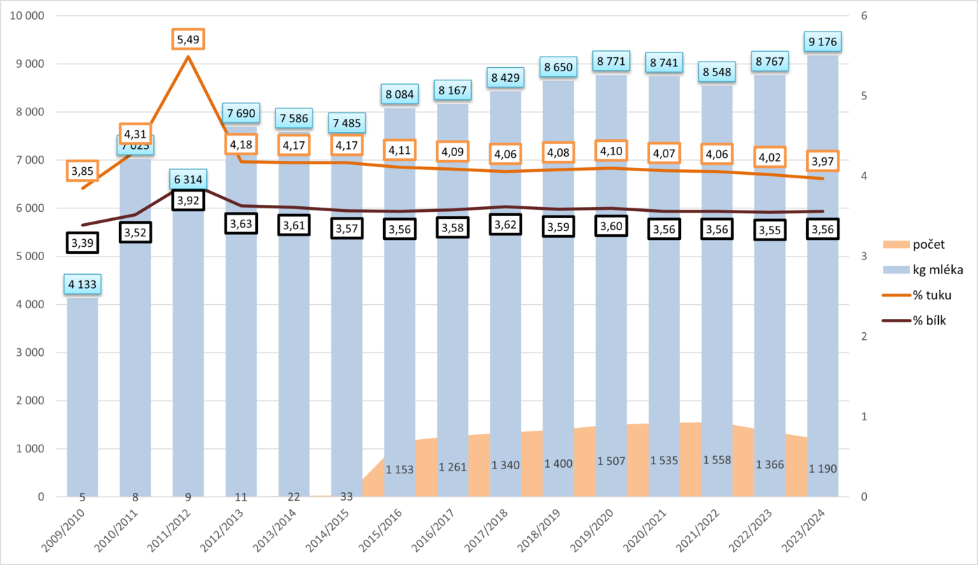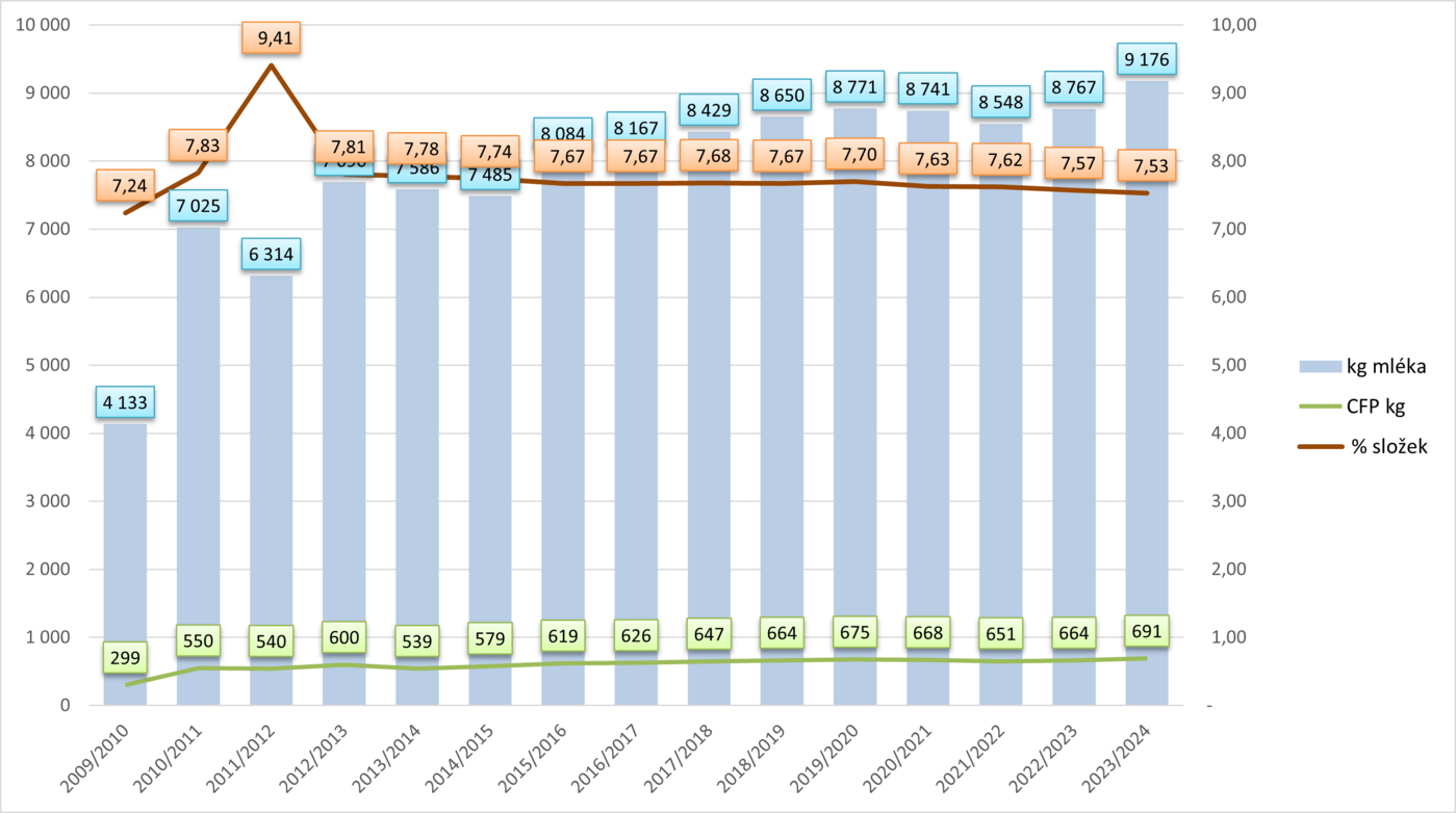 - Mléko: 7 600–8 200 kg