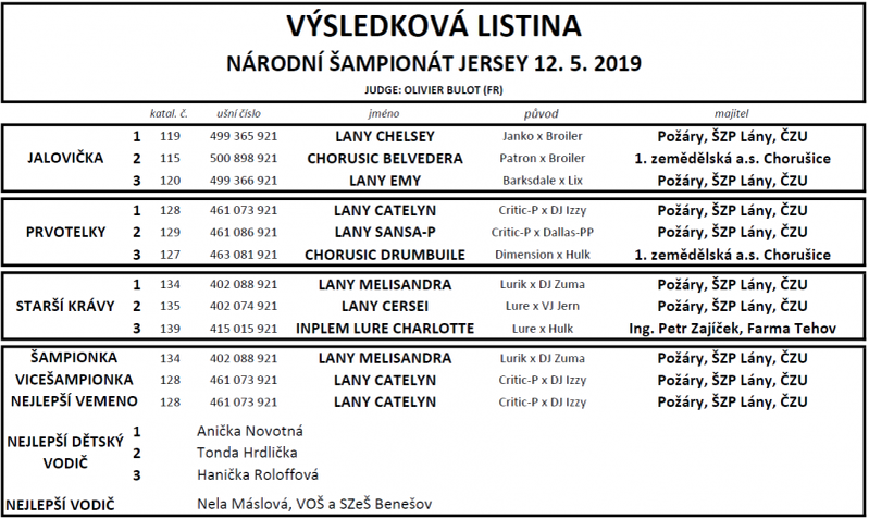 Olivier Bulot hodnotil zvířata jako špičkové představitelky plemene, které by uspěly i na jakékoliv jiné výstavě v Evropě. Zatím se sice se zvířaty do zahraničí nechystáme, ale v září „přijede Evropa k nám“ – pořádáme totiž v Praze zasedání World Jersey Cattle Bureau. V termínu 20. - 23. 9. 2019 tak v Čechách budou přítomni ti nejúspěšnější chovatelé jerseyek z celé Evropy a budeme jim moci ukázat naše nejlepší chovy, zvířata i krásy naší vlasti.