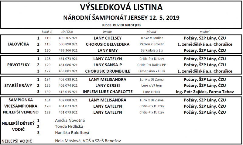 Olivier Bulot hodnotil zvířata jako špičkové představitelky plemene, které by uspěly i na jakékoliv jiné výstavě v Evropě. Zatím se sice se zvířaty do zahraničí nechystáme, ale v září „přijede Evropa k nám“ – pořádáme totiž v Praze zasedání World Jersey Cattle Bureau. V termínu 20. - 23. 9. 2019 tak v Čechách budou přítomni ti nejúspěšnější chovatelé jerseyek z celé Evropy a budeme jim moci ukázat naše nejlepší chovy, zvířata i krásy naší vlasti.