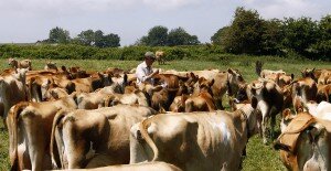 Další den jsme pokračovali přesunem na vlastní ostrov Jersey, který byl hlavním cílem naší cesty. Na ostrově je chováno odhadem asi 5 000 krav tohoto plemene. Nejde vždy o malé farmičky, jak by se člověk mohl domnívat – je zde přinejmenším pět farem se stavem asi 250 kusů skotu. Farmáři obvykle hospodaří na asi 100 ha půdy a specializují se kromě chovu dobytka na pěstování brambor. Bohužel i zde je patrný trend klesajících stavů dojených krav.