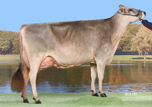 Kráva s nejlepším vemenem plemene Brown Swiss Zeus Palma.