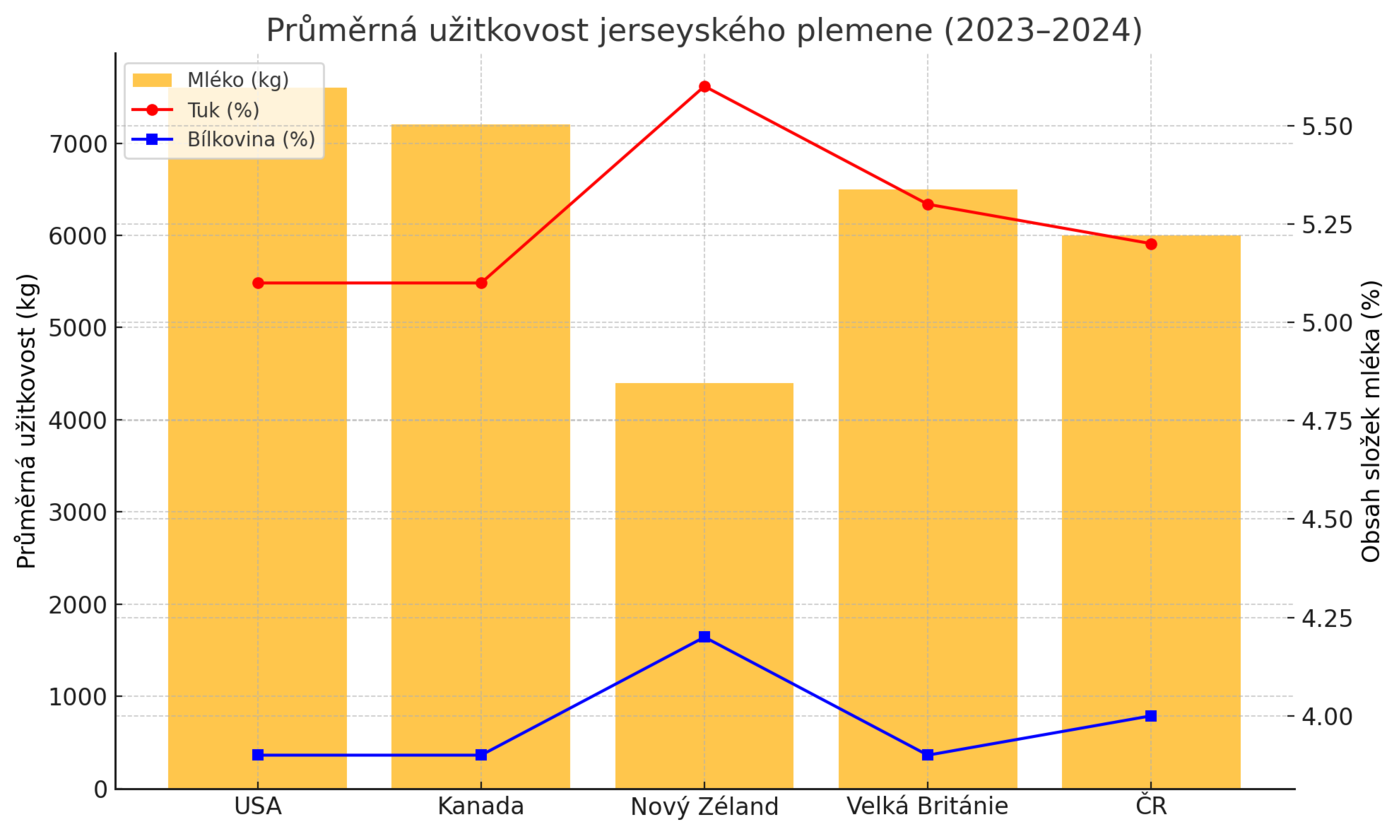 - Zdroj: American Jersey Cattle Association (AJCA), USDA – stav k roku 2023–2024